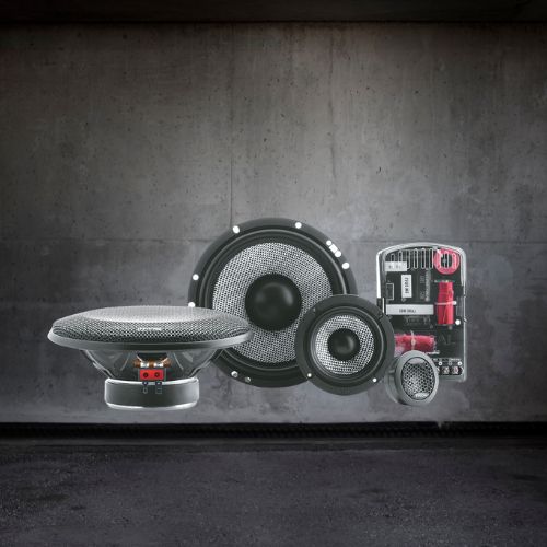 Zestaw wyposażono w dedykowane zwrotnice, które dokładnie rozdzielają pasmo między głośniki, poprawiając spójność brzmienia i chroniąc każdy przetwornik przed nieodpowiednimi częstotliwościami.