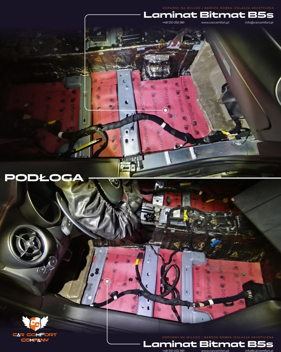 Dodatkowo użyto pianki Bitmat M5s Memory Foam 5 mm, która poprawia pochłanianie dźwięków i eliminuje rezonanse we wnętrzu pojazdu.