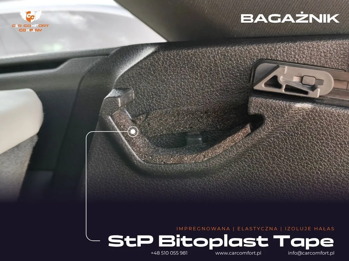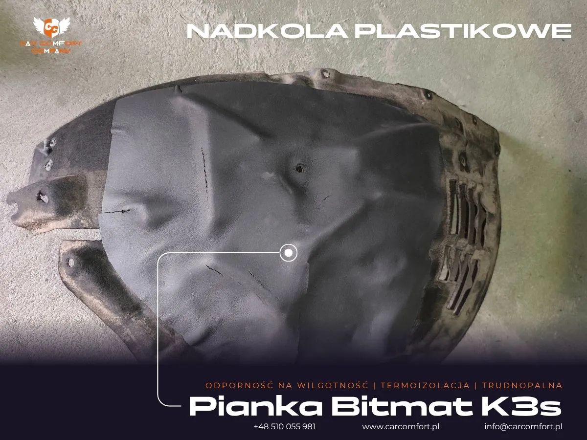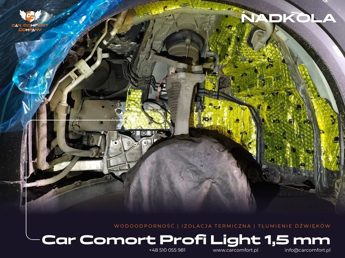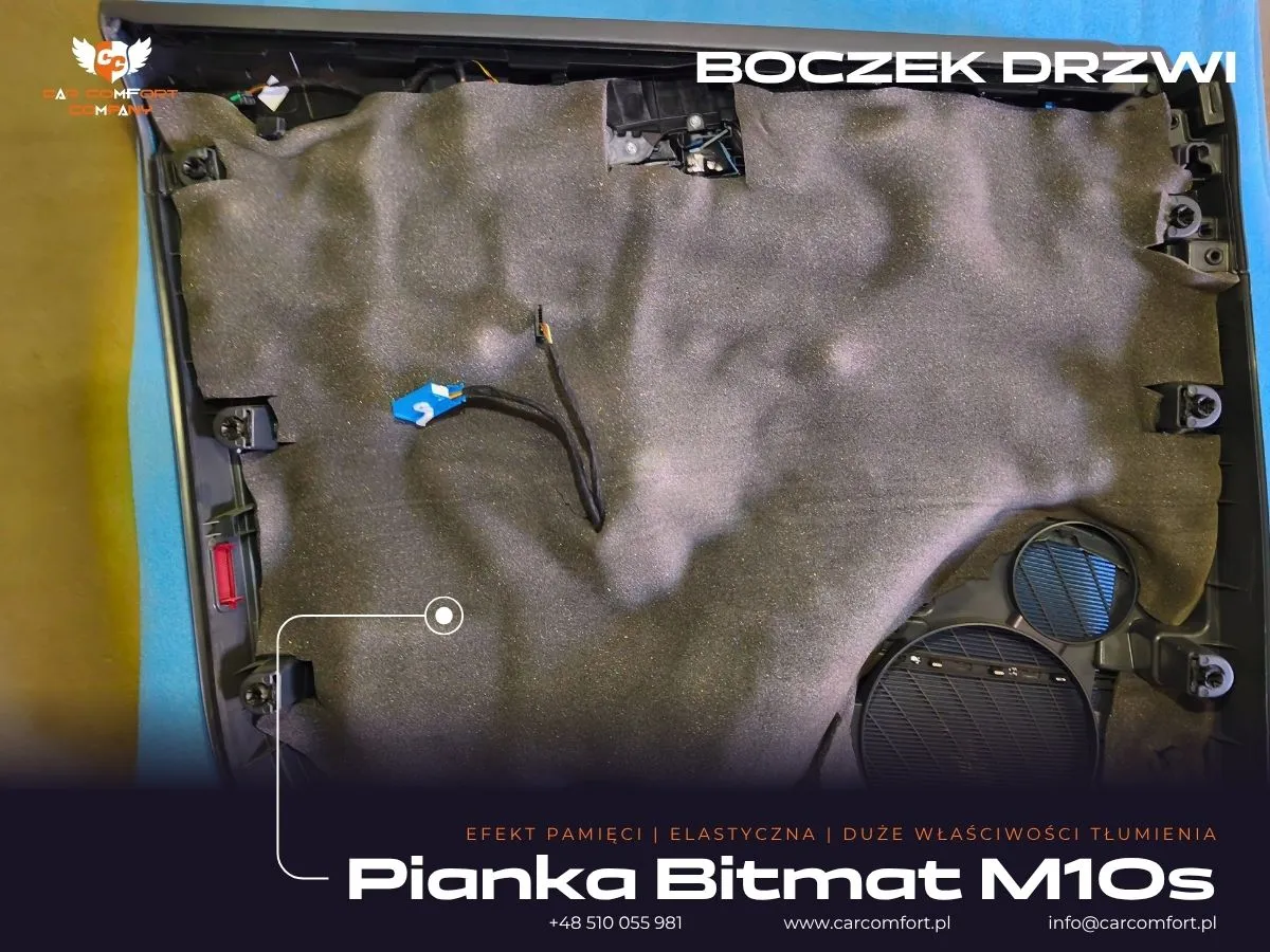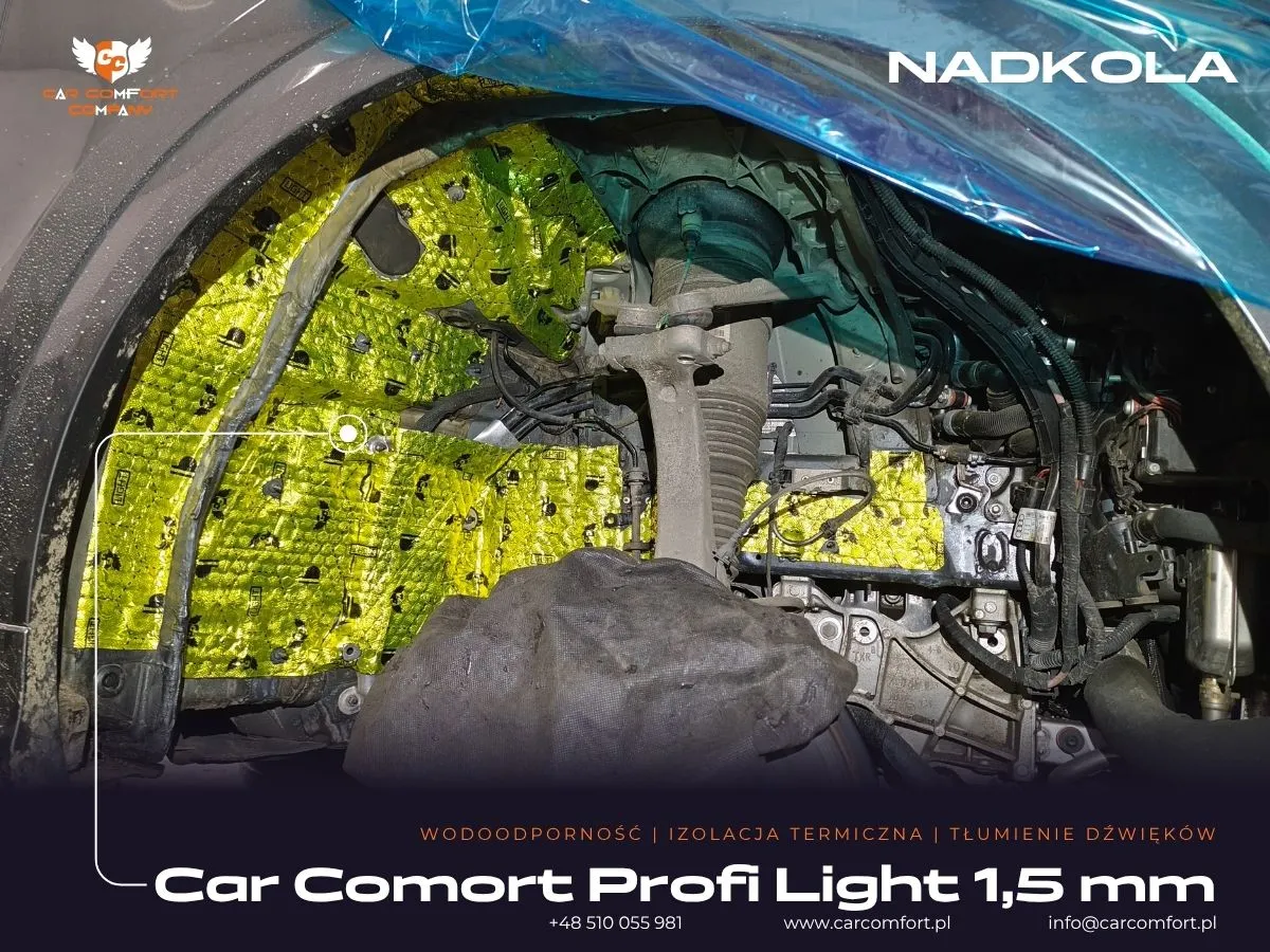Do wyciszenia drzwi w Audi Q8 zastosowano trójwarstwową izolację: Car Comfort Profi jako pierwszą i trzecią warstwę, oraz Accent jako warstwę drugą, skutecznie tłumiącą wibracje i pochłaniającą dźwięki. Boczki drzwi również zostały wzmocnione materiałem Car Comfort Profi. Metalowe nadkola otrzymały Car Comfort Profi jako pierwszą warstwę i StP Noise Liquidator jako drugą, co zapewnia doskonałą barierę dla hałasu z kół. Na nadkola plastikowe zaaplikowano Bitmat K3s. Całość uzupełniła aplikacja matowej folii PPF na karoserii, która oferuje nie tylko ochronę, ale i unikatowy wygląd.