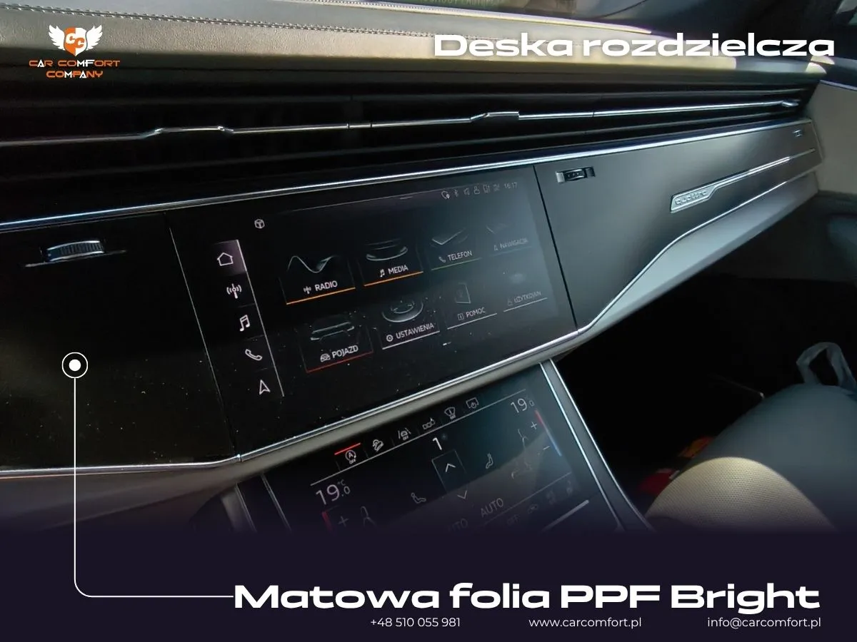 Audi Q8 to pojazd klasy premium, który zasługuje na najwyższy poziom komfortu i ochrony. Redukcja hałasu w kabinie znacząco poprawia wrażenia z jazdy, eliminując uciążliwy szum drogowy i wibracje, co przekłada się na większy relaks i lepszą jakość dźwięku. Jednocześnie, ochrona lakieru matową folią PPF (Paint Protection Film) zabezpiecza karoserię przed uszkodzeniami mechanicznymi, zarysowaniami i odpryskami, zachowując jej idealny wygląd i wartość na lata.