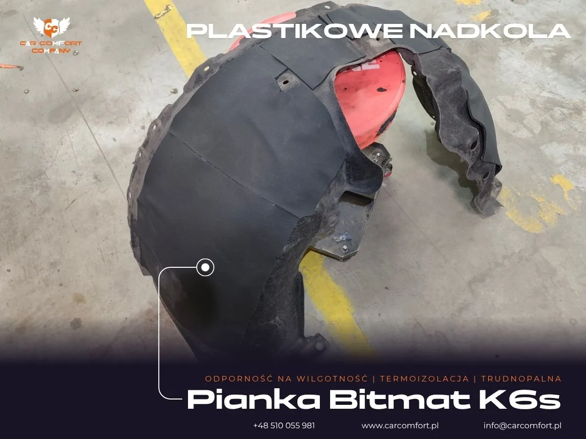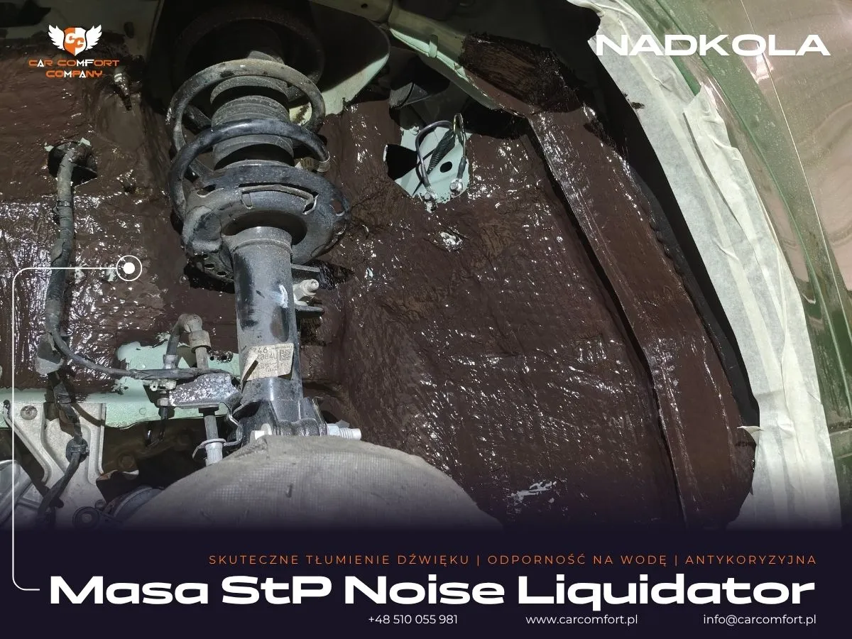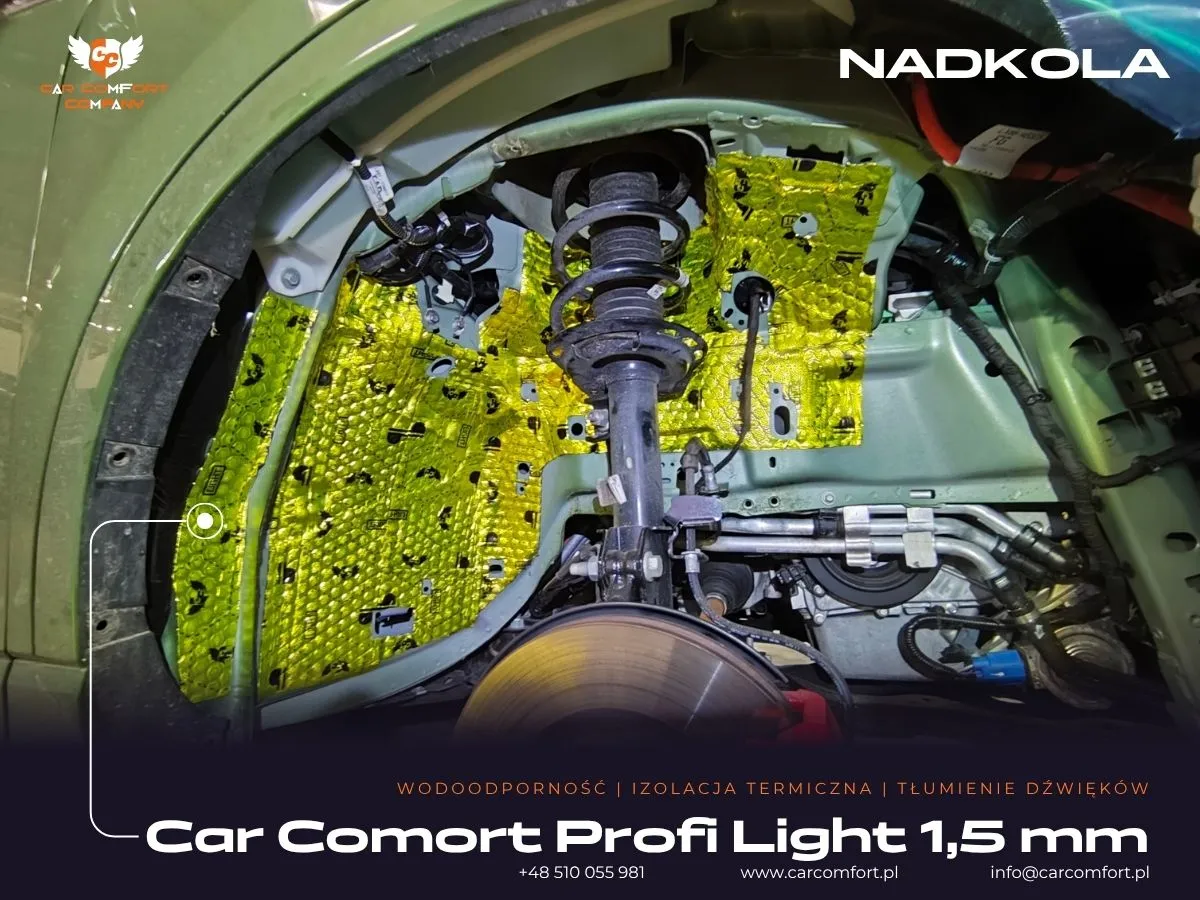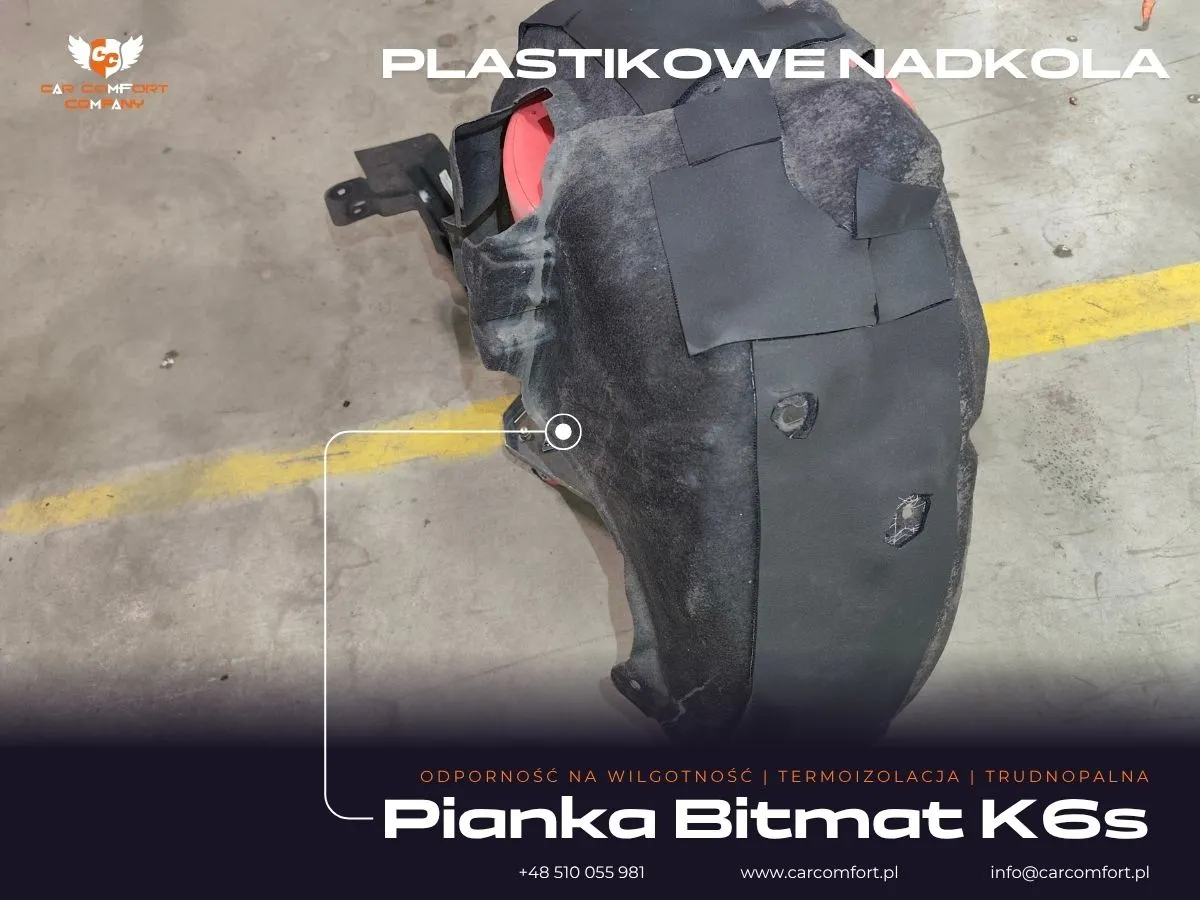 Do wygłuszenia nadkoli w Fordzie Kuga wykorzystano sprawdzone rozwiązania. Na metalowe elementy nadkoli jako pierwszą warstwę zaaplikowano maty butylowe Car Comfort Profi, a następnie pokryto je masą tłumiącą StP Noise Liquidator. Plastikowe osłony nadkoli zostały natomiast pokryte pianką kauczukową Bitmat K6s, która doskonale izoluje i pochłania dźwięki.