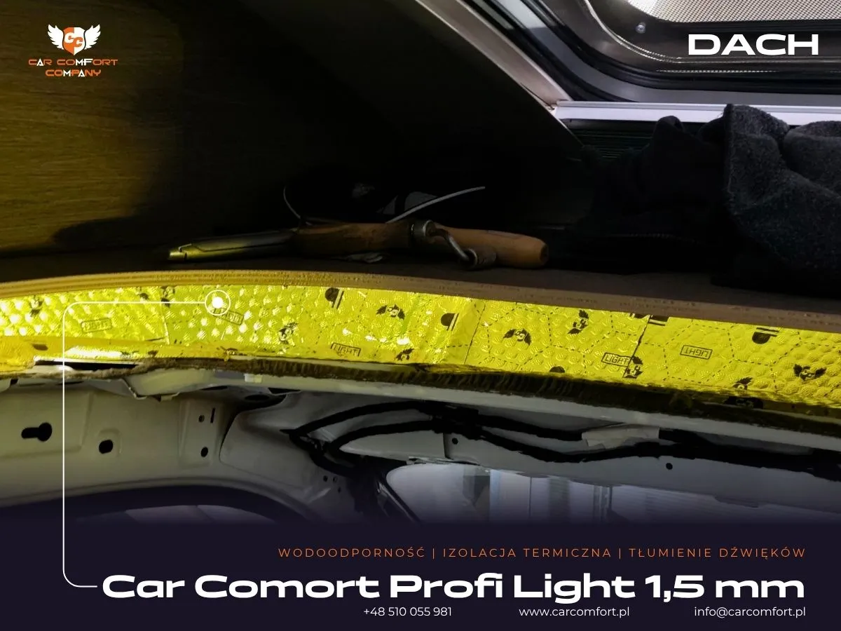 Dzięki kompleksowemu wyciszeniu materiałami Car Comfort Profi, K6s Pianka tłumiąca 6mm, M10s Memory Foam 10mm i StP Noise Liquidator, Ford Transit Kamper stał się cichszy o imponujące 2,3 dB. Ta ogromna redukcja hałasu przekłada się na znacznie większy komfort jazdy i odpoczynku w trakcie postojów, co jest bezcenne w podróżach kamperem.