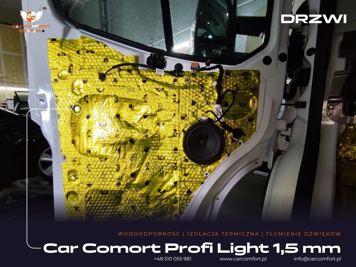 Wyciszenie drzwi i podszybia w Fordzie Transit Kamper jest kluczowe w walce z hałasem silnika oraz szumami powietrza.
