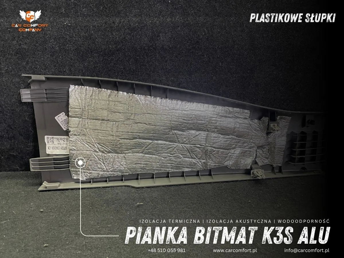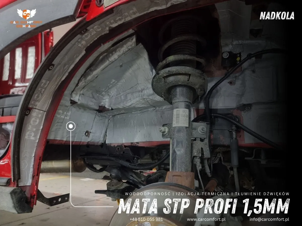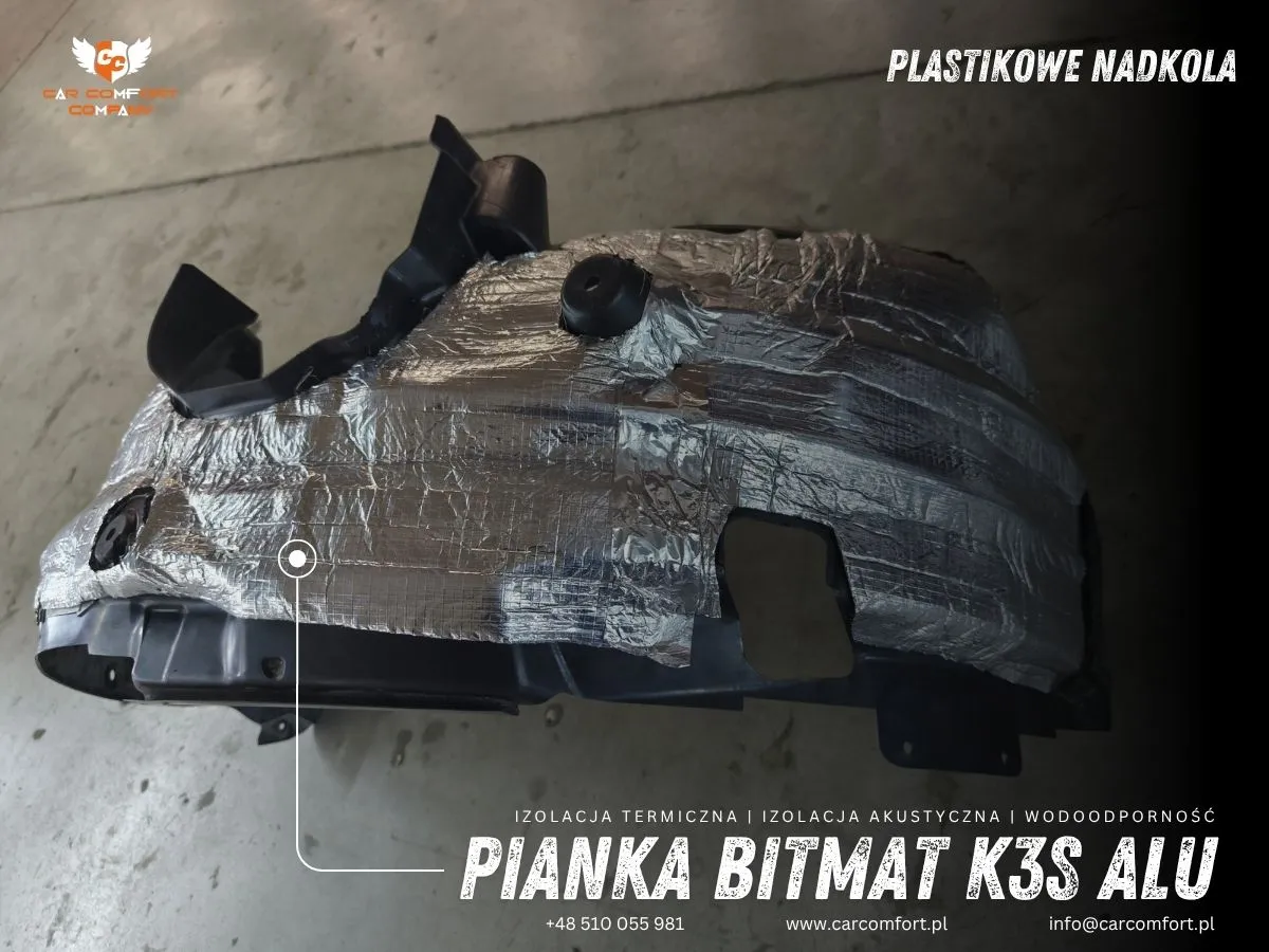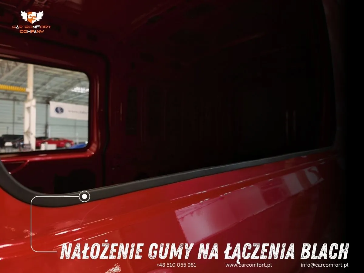 W Fordzie Transit L3 przeprowadzono kompleksowe wyciszenie całej kabiny oraz maski silnika. Do wyciszenia drzwi, słupków, boczków drzwi, plastikowych nadkoli i zewnętrznych nadkoli zastosowano StP Profi 1,5 mm jako pierwszą i trzecią warstwę (gdzie to było wymagane), oraz K3s ALU jako drugą warstwę. Uszczelki drzwi wzmocniono Sznur sealing cord. Wszystkie te materiały zostały użyte do stworzenia wielowarstwowej bariery akustycznej. Ponadto, wykonano montaż akumulatorów Webasto, zapewniających niezawodne zasilanie dla systemu ogrzewania postojowego. Całość uzupełniło profesjonalne przyciemnianie szyb, które zwiększyło komfort termiczny oraz prywatność.
