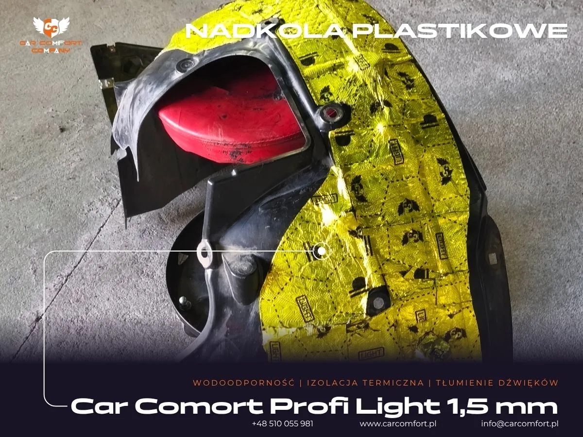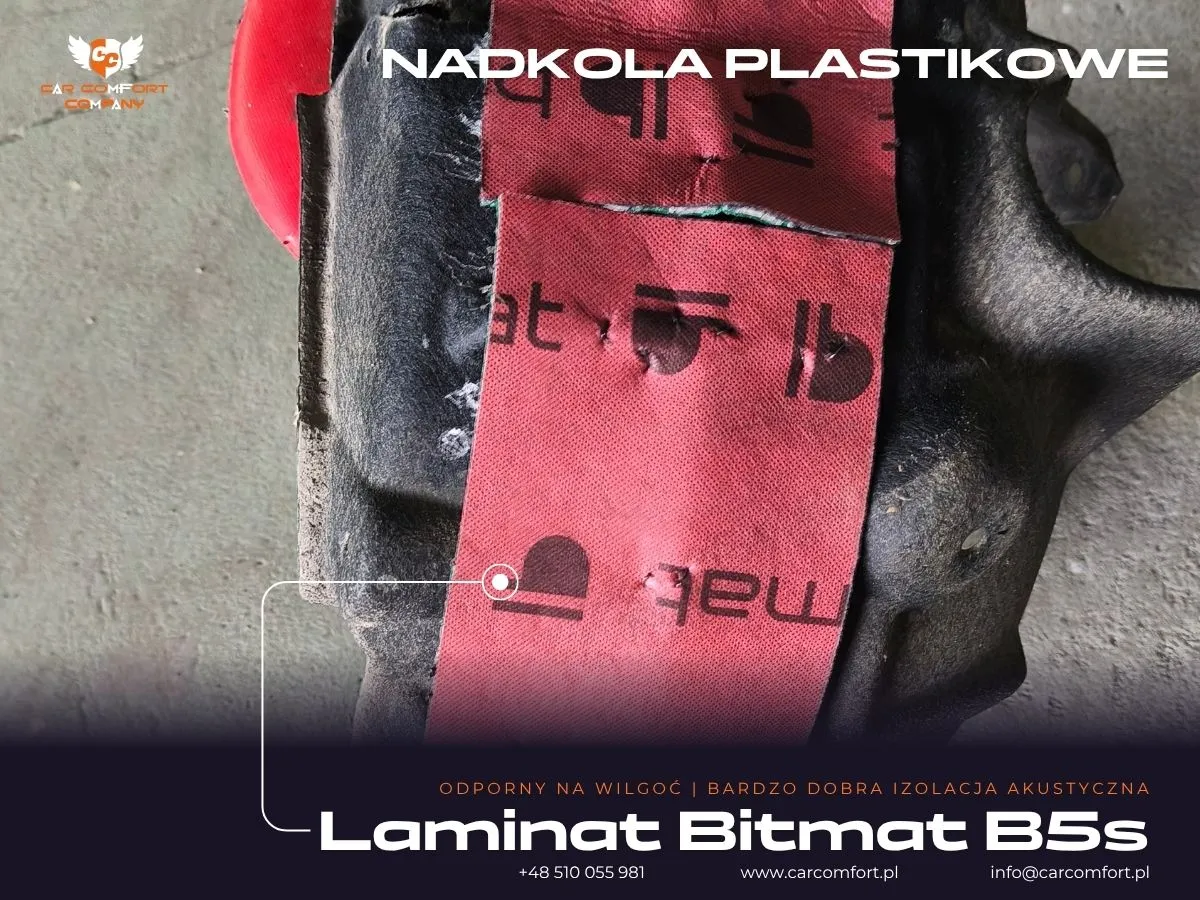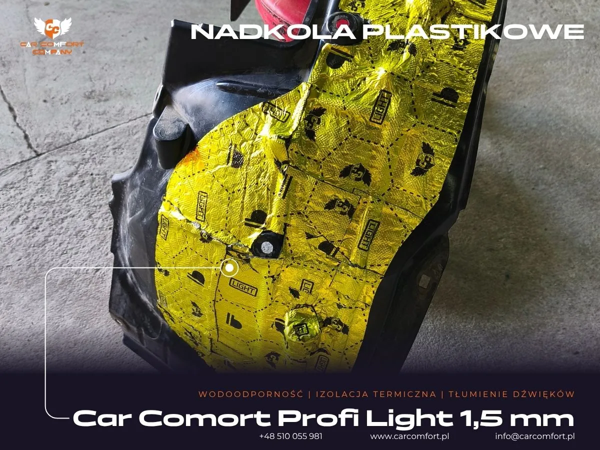 - Nadkola Plastikowe (Izolacja Akustyczna): Na wewnętrzną stronę plastikowych nadkoli zastosowano Bitmat B5s 5mm Memory Foam. Jest to pianka o otwartych komórkach, która doskonale absorbuje fale dźwiękowe i zapobiega rezonansom, które są częstym problemem w przypadku cienkich, plastikowych elementów.