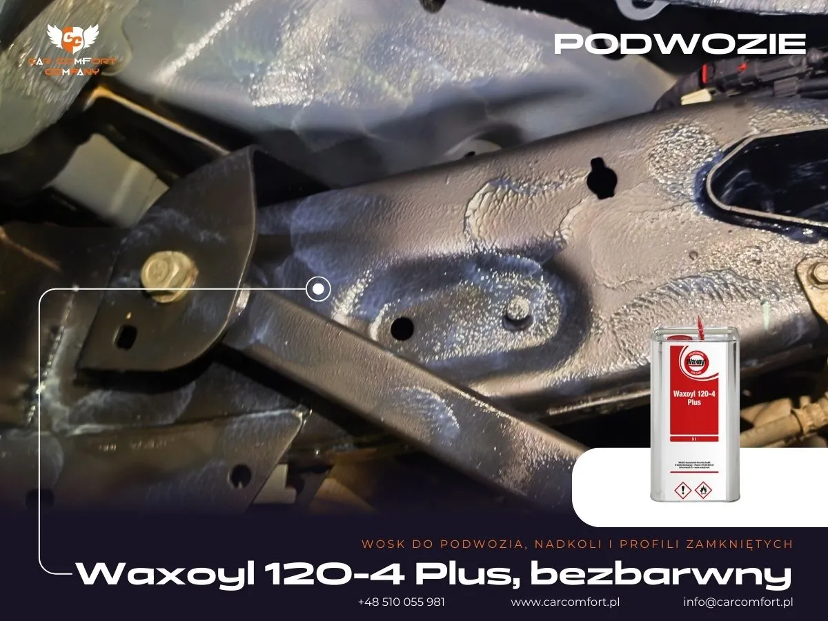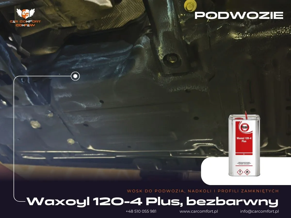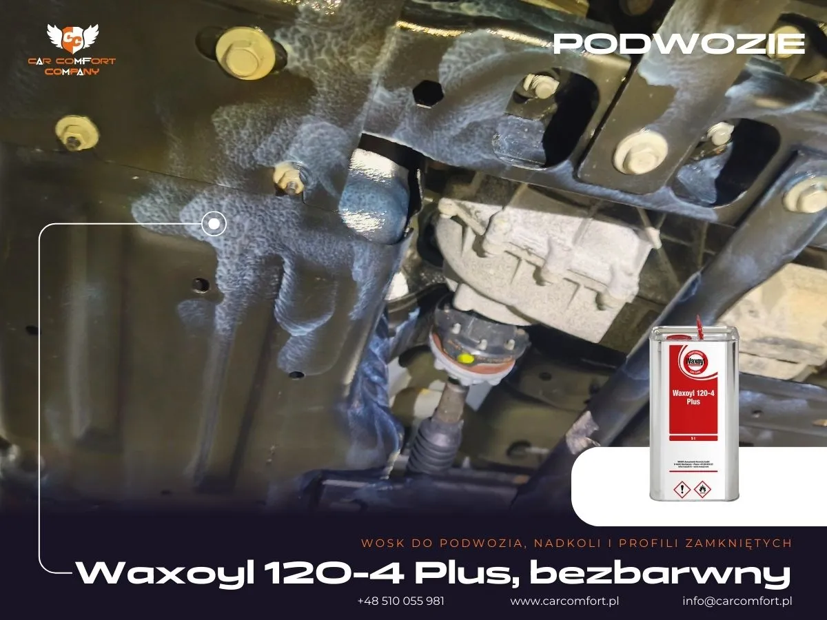 Do konserwacji nadkoli w Jeepie Wranglerze użyliśmy wysokiej jakości preparatu Waxoyl 120-4 Plus. Jest to środek o udowodnionym działaniu antykorozyjnym, który tworzy trwałą, elastyczną i szczelną powłokę ochronną. Waxoyl 120-4 Plus penetruje trudno dostępne miejsca, wypiera wilgoć i skutecznie neutralizuje ogniska korozji, zapobiegając jej dalszemu rozwojowi. Preparat ten jest odporny na ścieranie i uderzenia kamieni, co jest niezwykle istotne w trudnym terenie. Dodatkowo, konserwacja nadkoli wpływa na redukcję hałasu, tłumiąc szum kół i drobne kamyki uderzające o nadwozie.