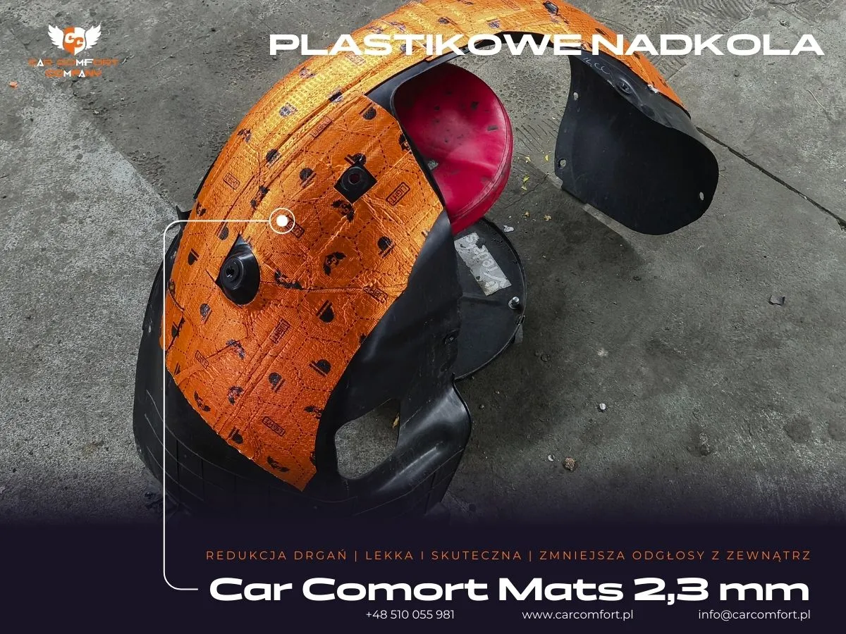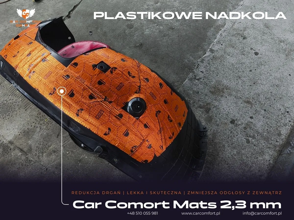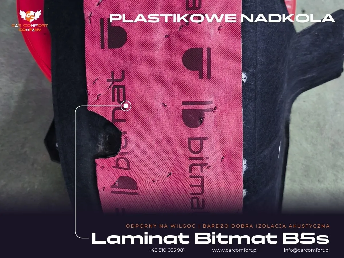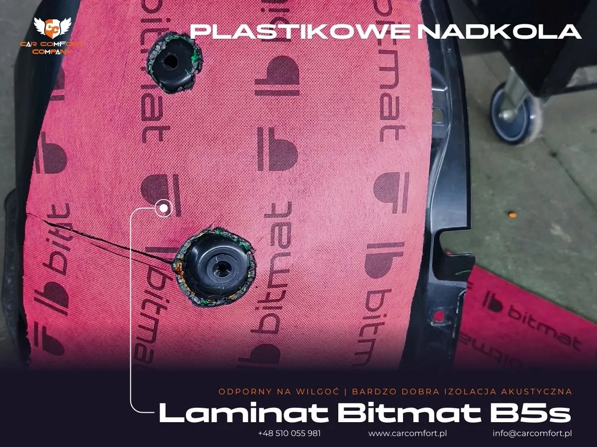 - Nadkola plastikowe: Na ich wewnętrzną stronę trafiła mata Car Comfort Mats, a jako druga warstwa, dla dodatkowej izolacji akustycznej i pochłaniania dźwięku, użyliśmy pianki Bitmat B5s.