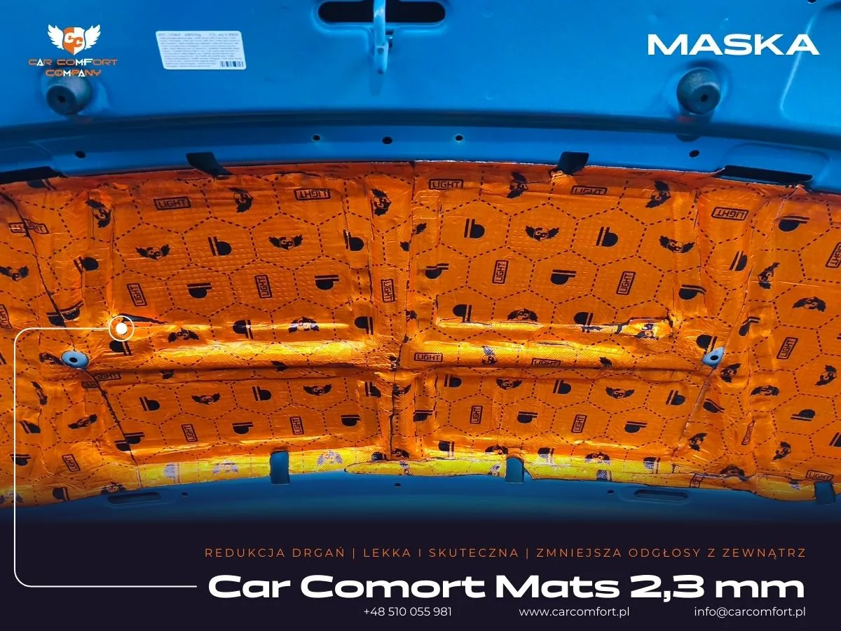 - Podszybie: Zastosowano matę Car Comfort Mats, a następnie piankę Bitmat K6s, co skutecznie obniżyło poziom hałasu z silnika i drogi.