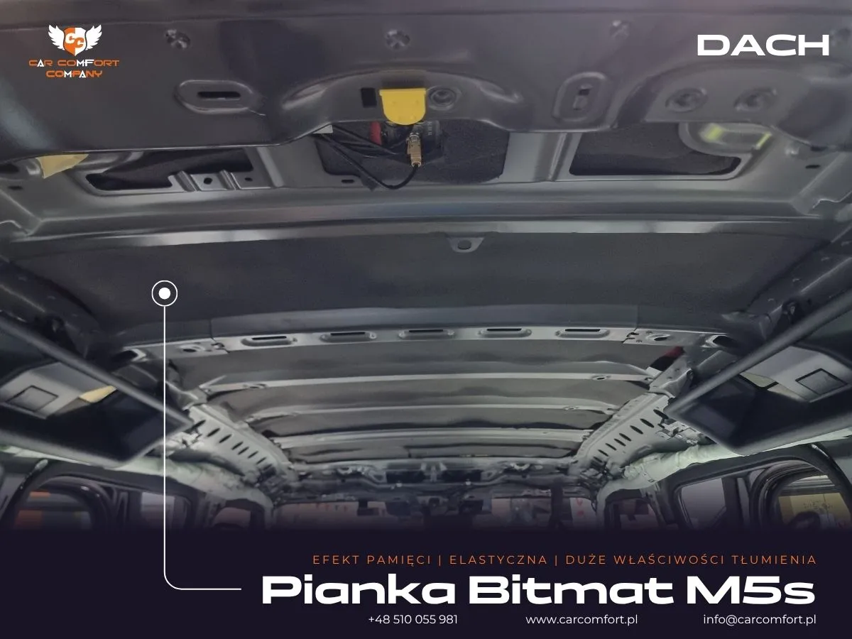 Dzięki kompleksowemu podejściu do wyciszenia, z zastosowaniem materiałów takich jak Car Comfort Profi, Bitmat K6s, Bitmat M10s, Acoustic Block oraz Bitmat B5s, Land Rover Defender zyskał nowy wymiar komfortu akustycznego. Redukcja hałasu o 1,2 dB na wszystkich kluczowych płaszczyznach sprawia, że długie podróże stają się znacznie przyjemniejsze, a każda chwila spędzona w Defenderze to relaks i spokój.
