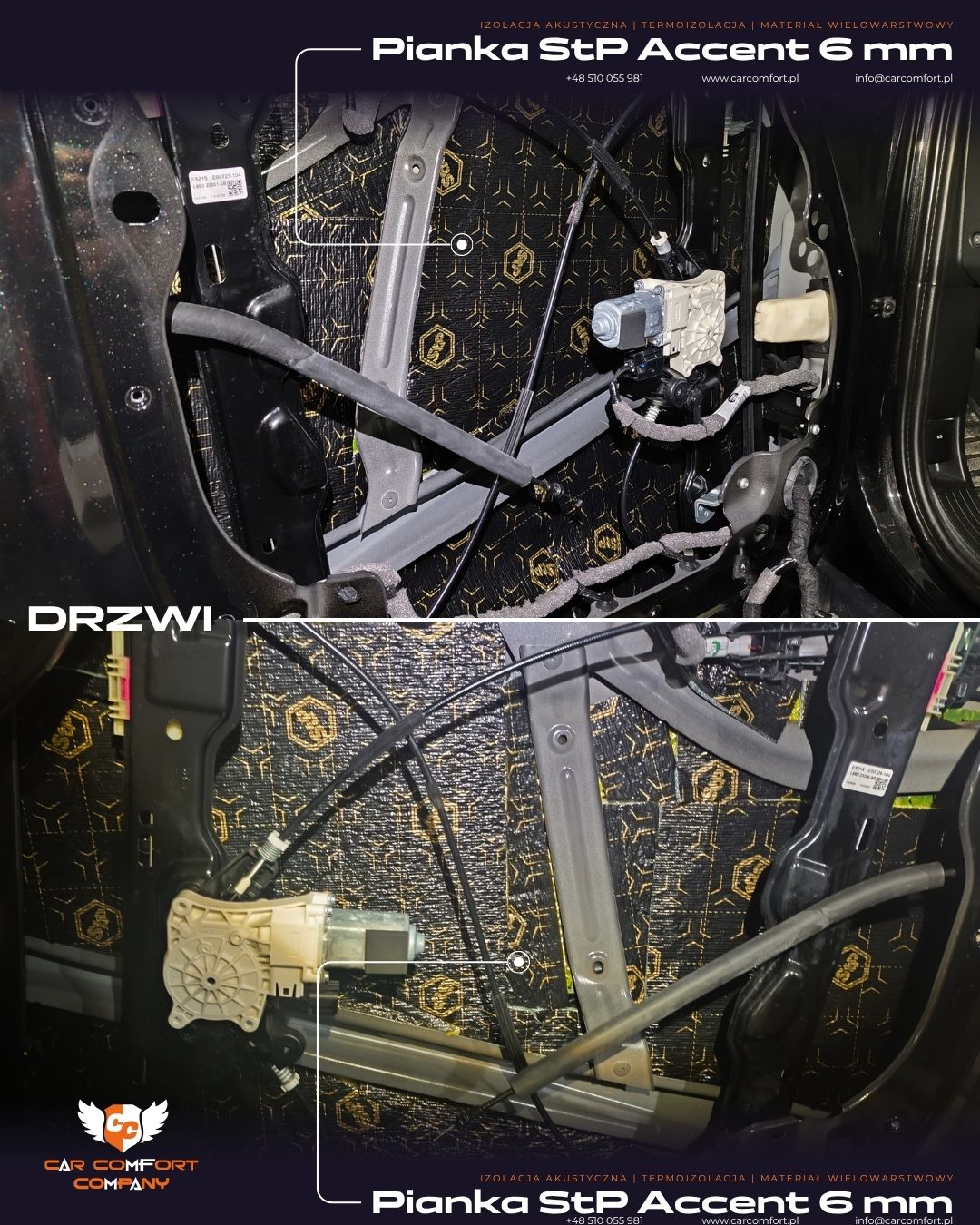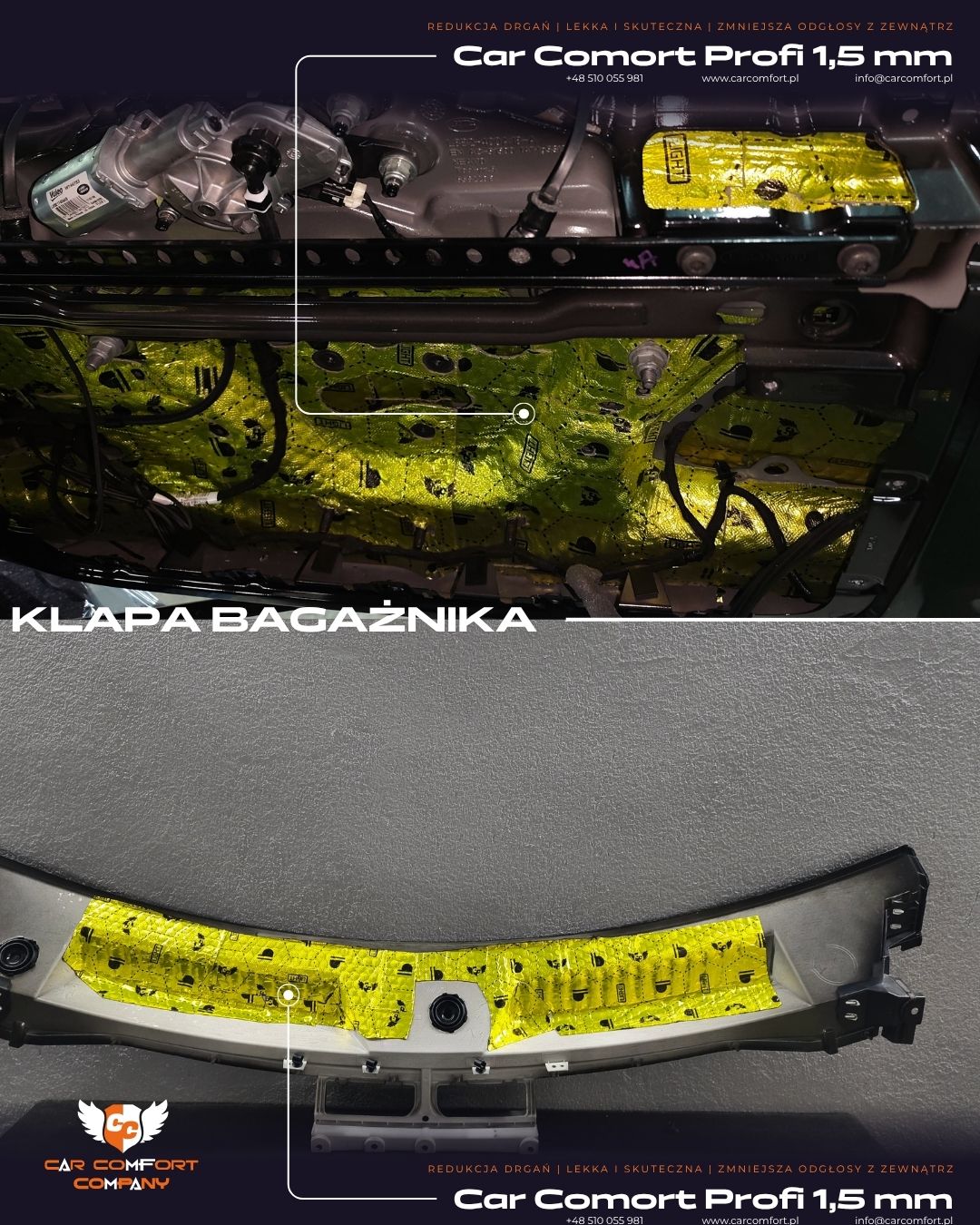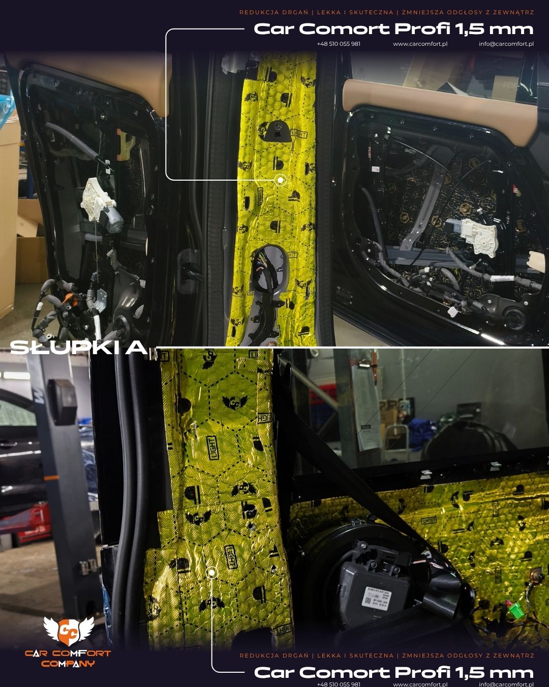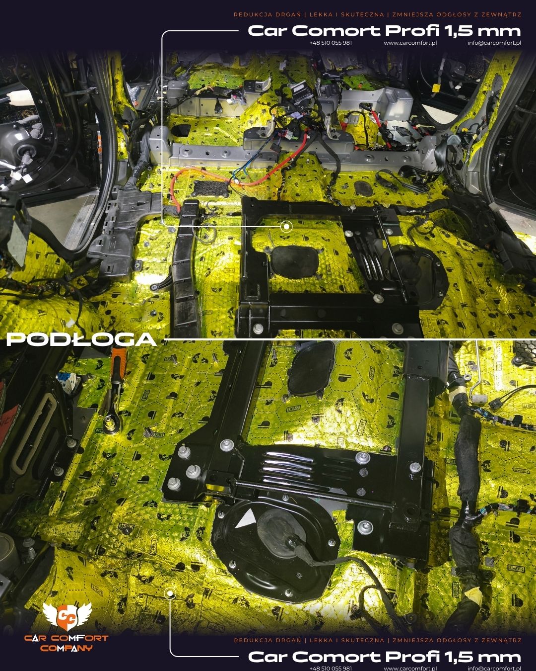 Zastosowano maty Car Comfort Profi Light 1,5 mm, które skutecznie tłumią drgania konstrukcji i są idealne dla dużych powierzchni w autach typu SUV.