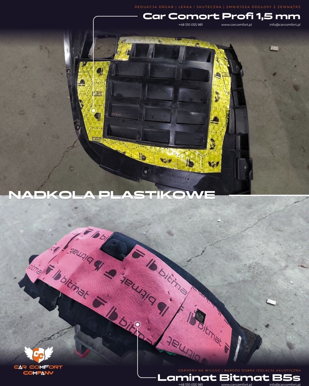 Podszybie wykonano w technologii mata + Bitmat K6s, ograniczając hałas z przedniej części pojazdu.