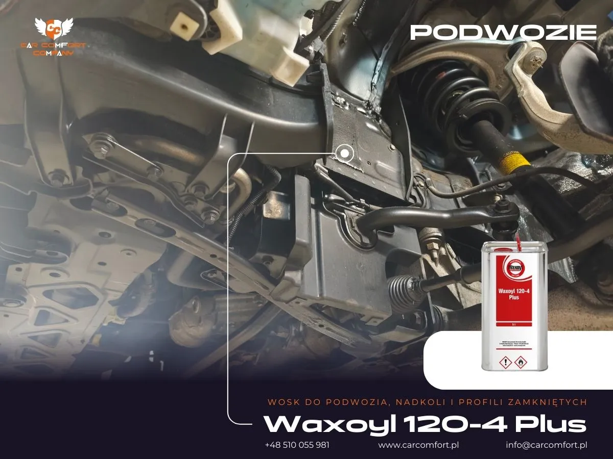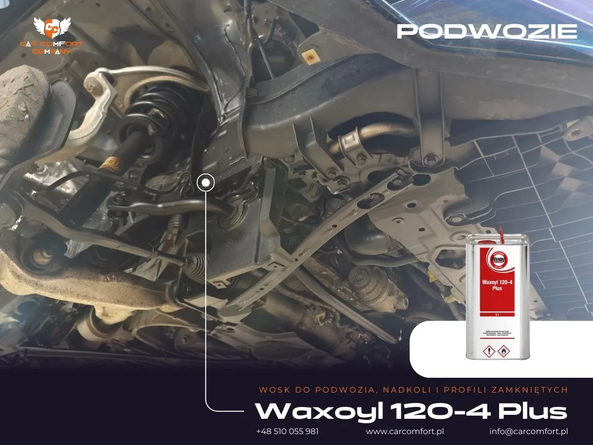W Lexusie GS wykonano konserwację podwozia przy użyciu Waxoyl 120-4 Plus, który zabezpiecza elementy metalowe przed wilgocią, solą drogową oraz korozją, nie wpływając negatywnie na estetykę ani właściwości jezdne pojazdu.