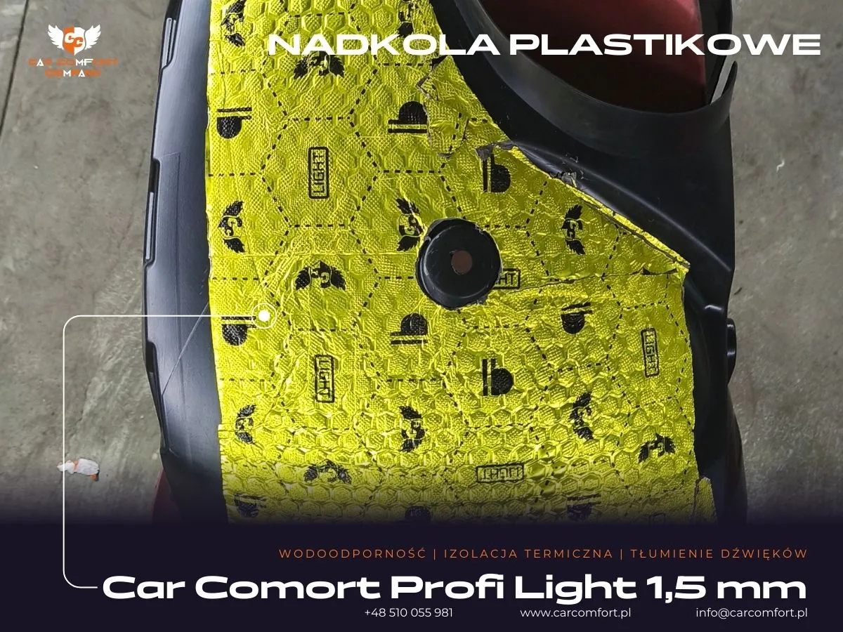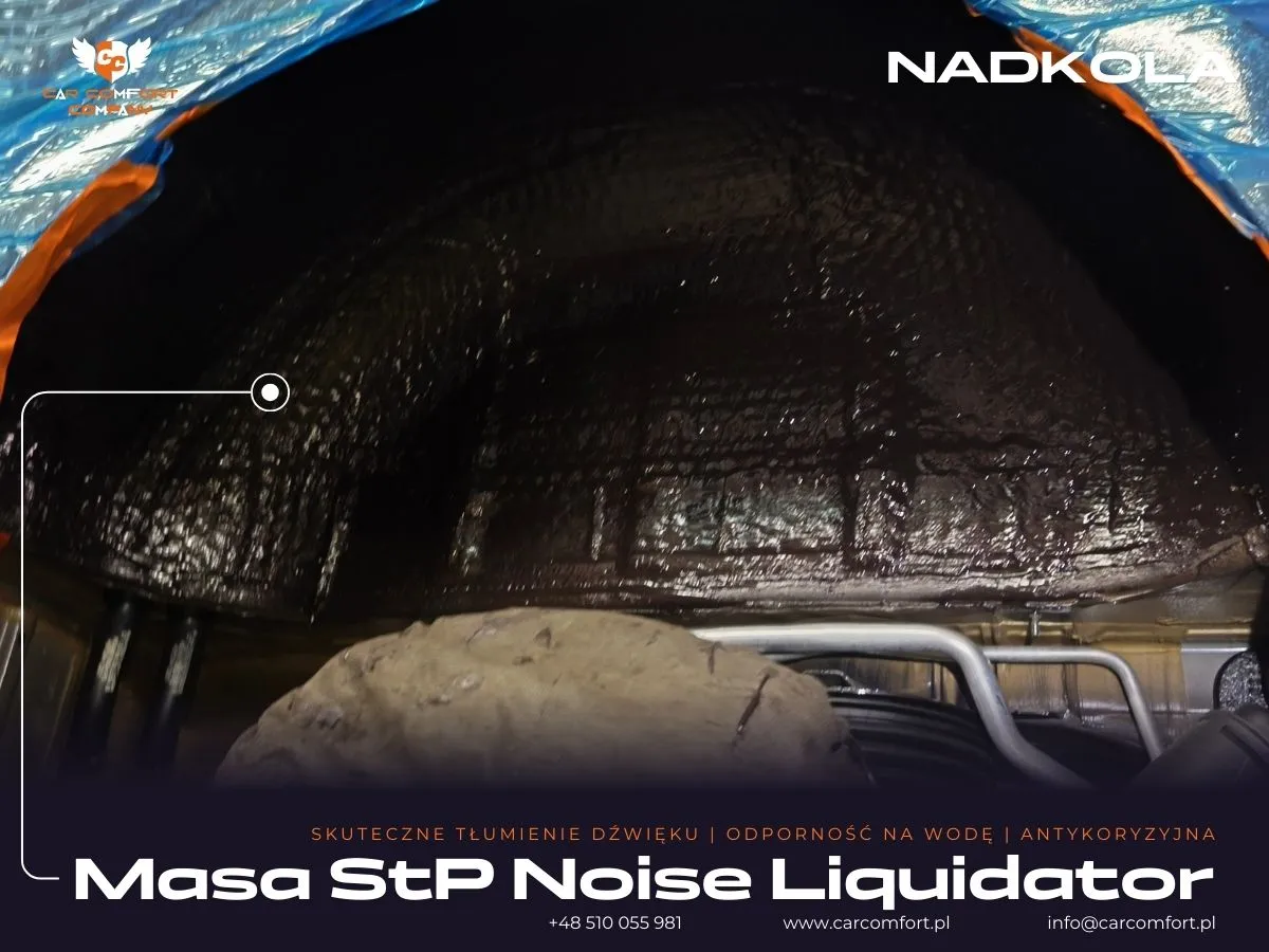 Nadkola zostały wyciszone, aby zminimalizować szum opon i hałas drogowy. Na metalową część nadkola jako pierwszą warstwę zaaplikowano matę Car Comfort Profi 1,5mm, a następnie StP Noise Liquidator, który utwardza powierzchnię. Na plastikowe nadkola również nałożono Car Comfort Profi 1,5mm, a na nią piankę Bitmat B5s, zapewniającą doskonałe pochłanianie dźwięku.