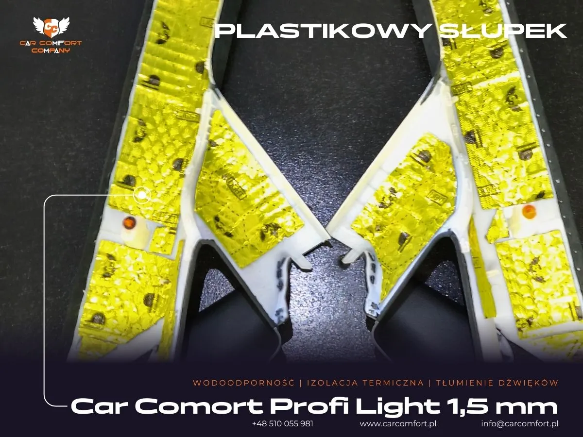 Wyciszenie podłogi w Mercedesie V-klasa objęło dwie warstwy: matę Car Comfort Profi 1,5mm oraz piankę Bitmat B5s, co skutecznie tłumi hałas z podwozia. Słupki – zarówno metalowe, jak i plastikowe – zostały starannie wyciszone matą Car Comfort Profi 1,5mm, a na plastikowe elementy dodatkowo trafiła pianka Bitmat M10s.