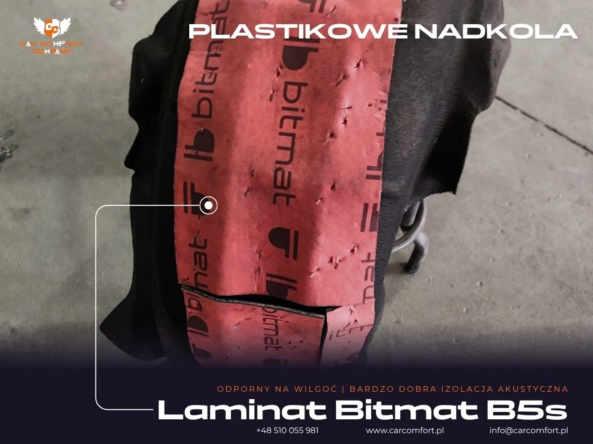 W Skodzie Octavii skoncentrowaliśmy się na precyzyjnym wyciszeniu nadkoli, które są często głównym źródłem hałasu z drogi i szumu opon. Na metalową część nadkola jako pierwszą warstwę zaaplikowano matę butylową Car Comfort Mats. Ta wysokiej jakości mata doskonale tłumi wibracje i rezonanse, tworząc solidną barierę akustyczną. Następnie, dla jeszcze lepszego efektu, zastosowano Noise Liquidator – innowacyjny preparat wyciszający, który utwardza powierzchnię i niweluje wszelkie pozostałe drgania, co znacząco zwiększa efektywność wygłuszenia.