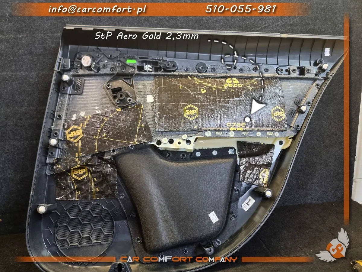 Skoda Octavia III przeszła gruntowny proces wyciszenia, który pozwolił na znaczące ograniczenie poziomu hałasu wewnątrz kabiny – aż o 3,15 dB. Dzięki zastosowaniu najwyższej klasy materiałów, takich jak STP Aero Gold, Bitmat M10s, czy Accent, auto zyskało nowy poziom komfortu akustycznego. Efektem jest znacznie cichsze wnętrze zarówno podczas jazdy miejskiej, jak i autostradowej.