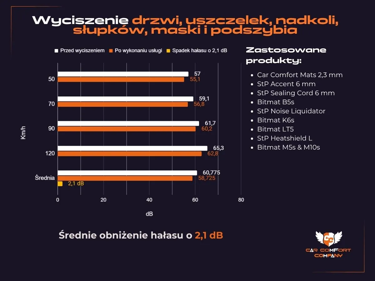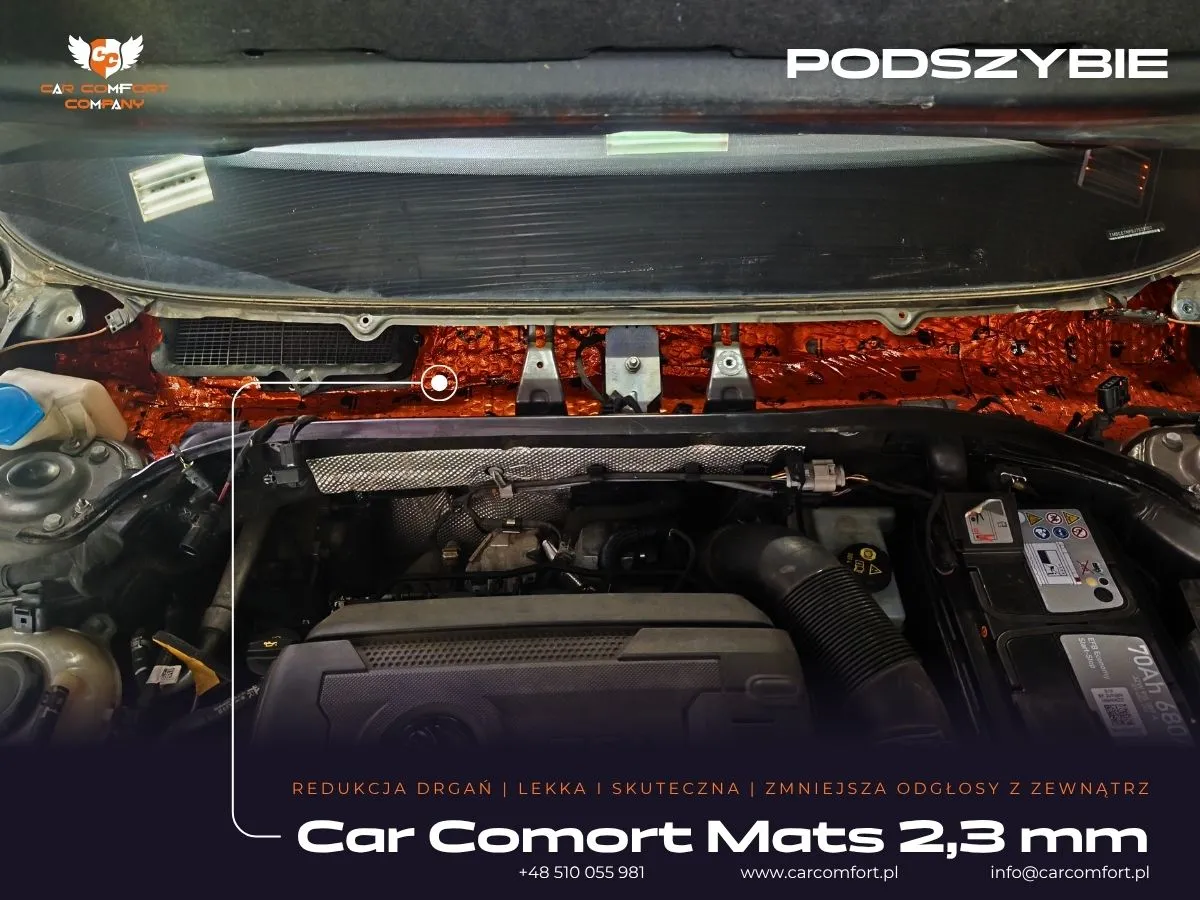 Skoda Superb to samochód, w którym komfort podróżowania jest priorytetem, jednak nawet w tej klasie pojazdów hałas z zewnątrz, rezonanse konstrukcyjne i dźwięki pracy silnika mogą obniżać komfort jazdy. Kompleksowe wyciszenie wszystkich kluczowych obszarów – drzwi, słupków, nadkoli, maski i komory silnika – to inwestycja, która znacząco poprawia akustykę wnętrza. Redukcja niechcianych dźwięków przekłada się na mniejsze zmęczenie, lepszą jakość rozmów i pełniejsze doświadczenie z systemu audio, transformując każdą podróż w oazę spokoju.