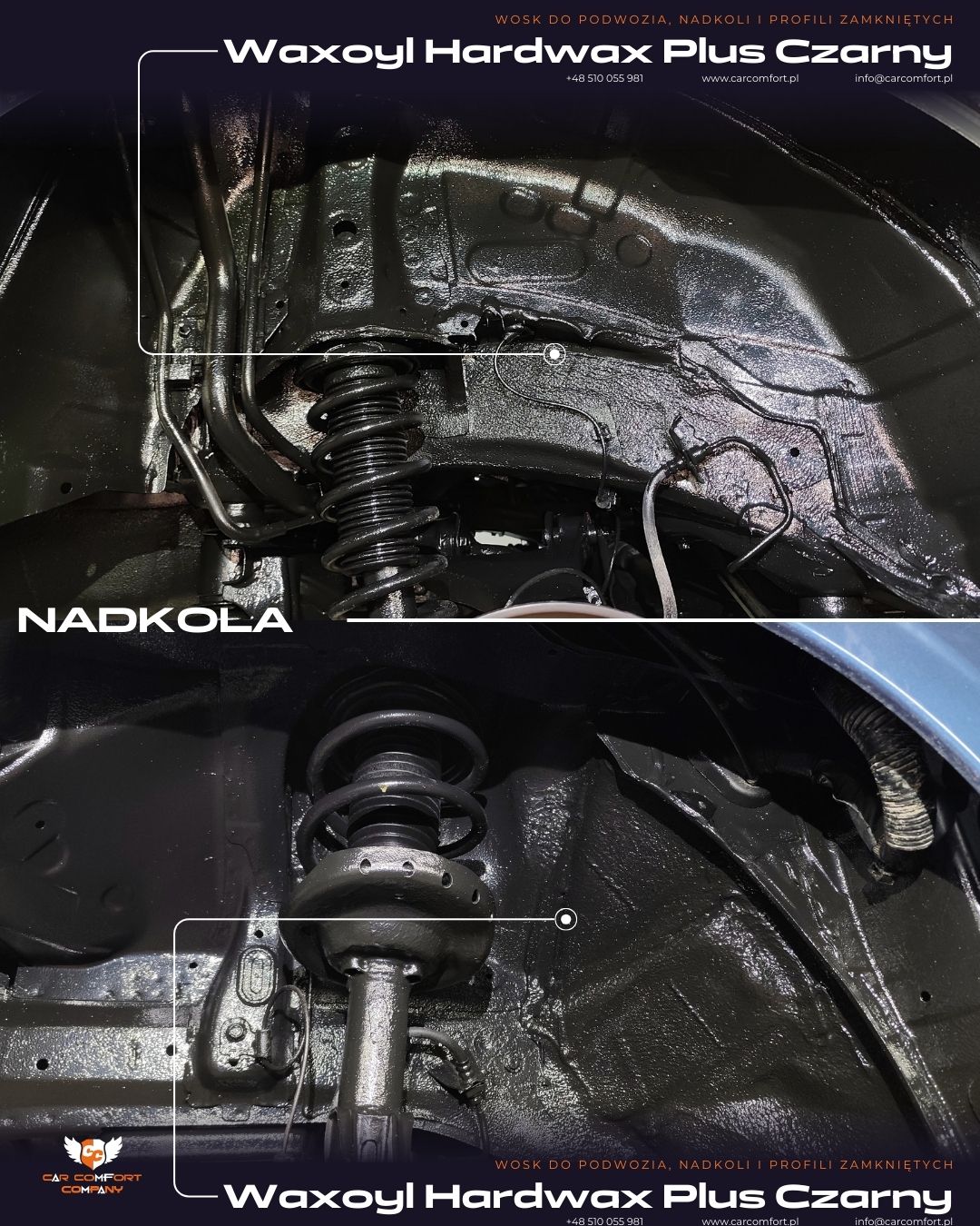 Preparat Hardwax Plus tworzy elastyczną i odporną warstwę ochronną, która dobrze sprawdza się w samochodach eksploatowanych w zmiennych warunkach pogodowych oraz na drogach o gorszej nawierzchni. Dzięki temu podwozie pozostaje zabezpieczone na długie lata.