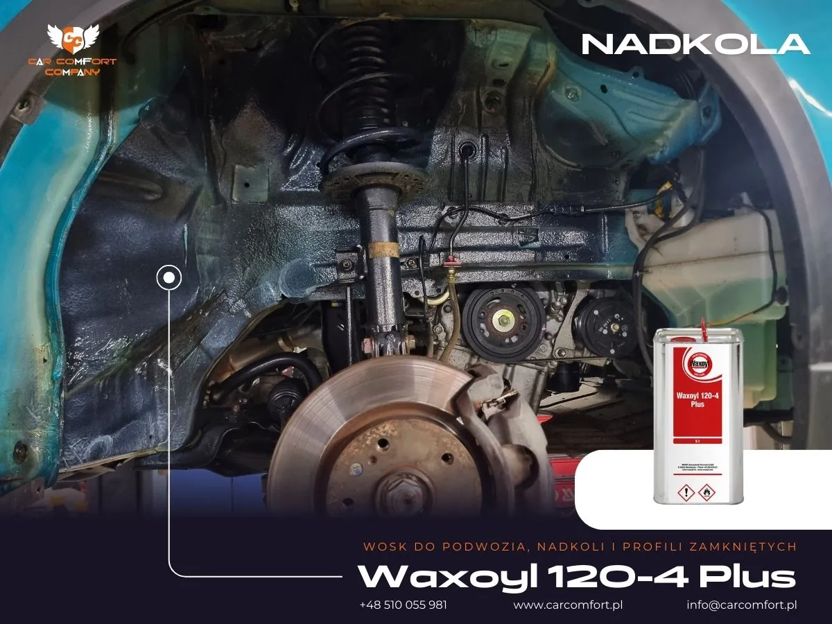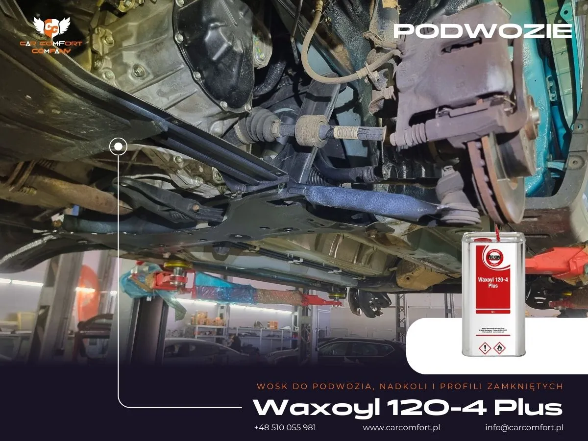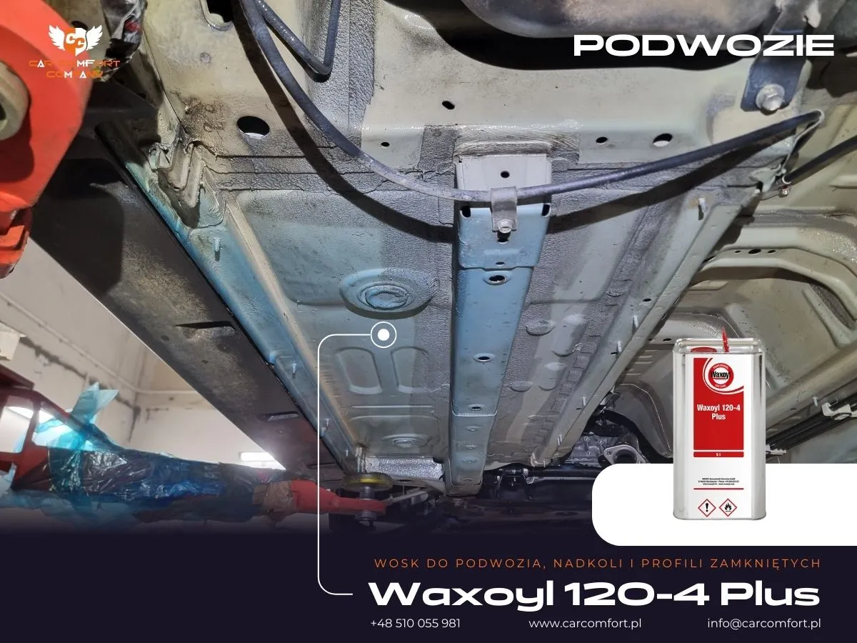 Do konserwacji podwozia i nadkoli w Suzuki Vitara użyliśmy wysokiej jakości preparatu Waxoyl 120-4. Jest to środek o udowodnionym działaniu antykorozyjnym, który tworzy trwałą, elastyczną i szczelną powłokę ochronną na całej powierzchni. Waxoyl 120-4 penetruje trudno dostępne miejsca, wypiera wilgoć i skutecznie neutralizuje ogniska korozji, zapobiegając jej dalszemu rozwojowi. Preparat ten jest odporny na ścieranie i uderzenia, co jest niezwykle istotne w codziennym użytkowaniu.