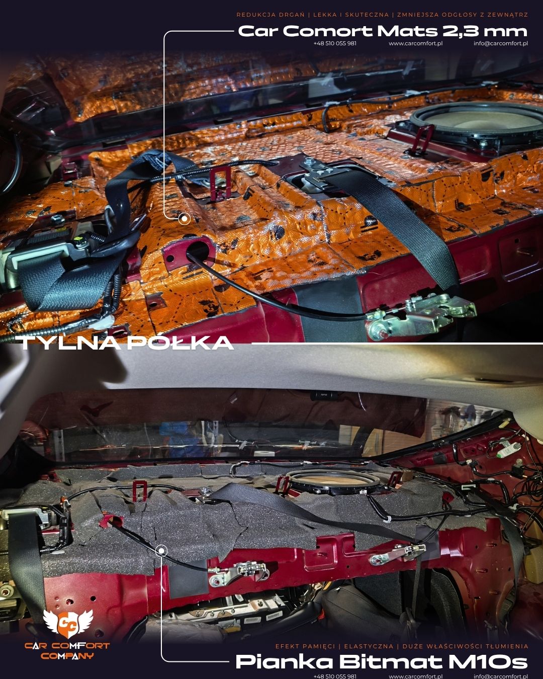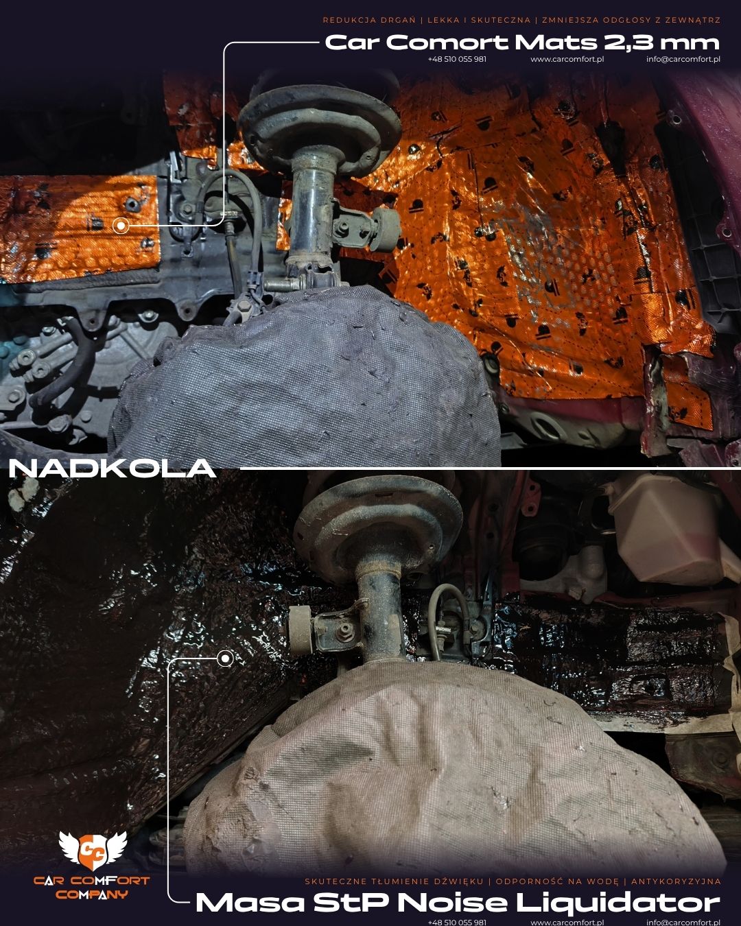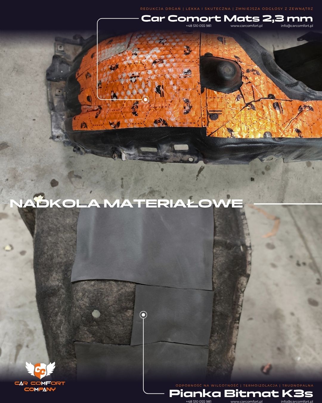 Nadkola zostały wyciszone przy użyciu Car Comfort Mats 2,3 mm oraz pianki Bitmat K3s, która dobrze sprawdza się w strefach narażonych na wilgoć.