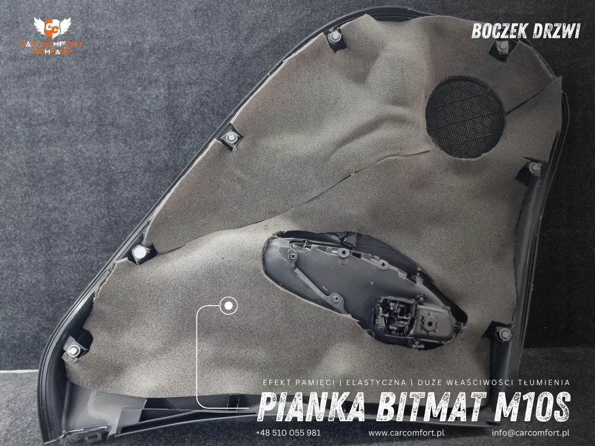 W projekcie Toyota Yaris zastosowaliśmy maty STP Aero Gold jako pierwszą warstwę, STP Accent 6mm jako drugą warstwę, Bitmat M10s na boczki drzwi oraz całość dopełniła mata STP Crystal. Takie połączenie materiałów zapewnia doskonałą izolację akustyczną.