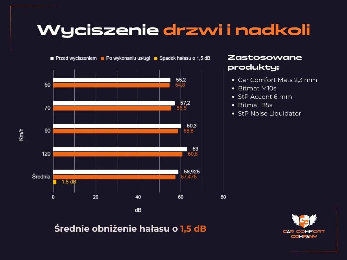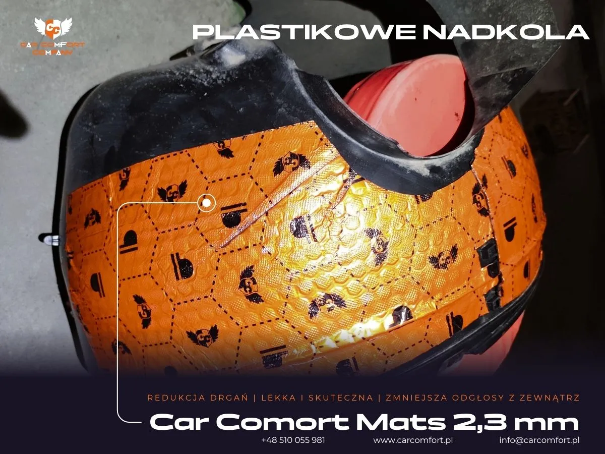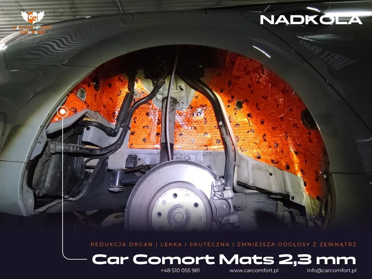 Do wyciszenia nadkoli plastikowych oraz nadkoli zewnętrznych w Volkswagenie Arteon zastosowano Car Comfort Mats 2,3 mm jako pierwszą warstwę, która skutecznie pochłania wibracje. Dodatkowo, na nadkola plastikowe jako drugą warstwę zaaplikowano Bitmat K3s, co wzmocniło efekt izolacji akustycznej, zapewniając kompleksową barierę dla niechcianych dźwięków.