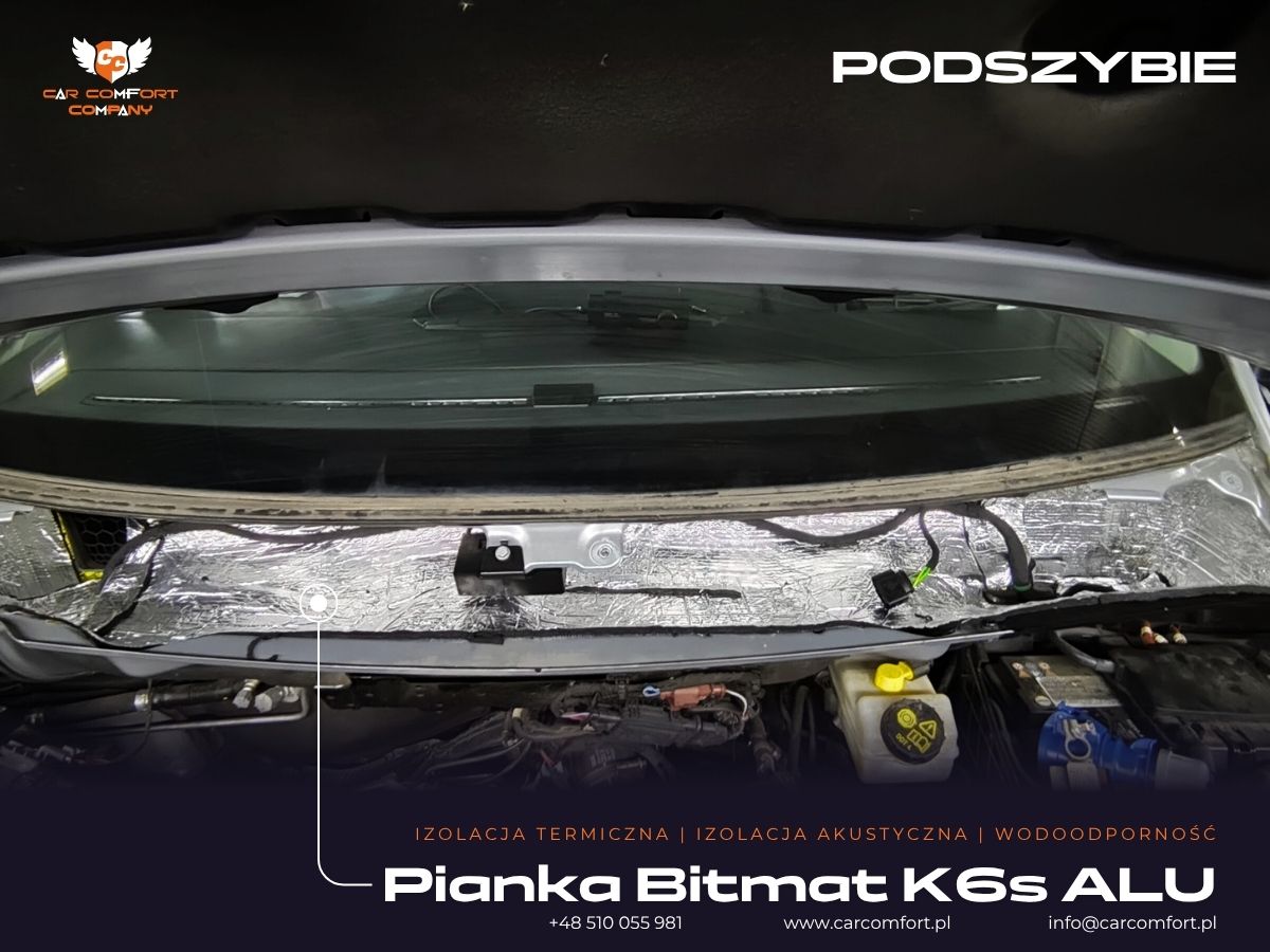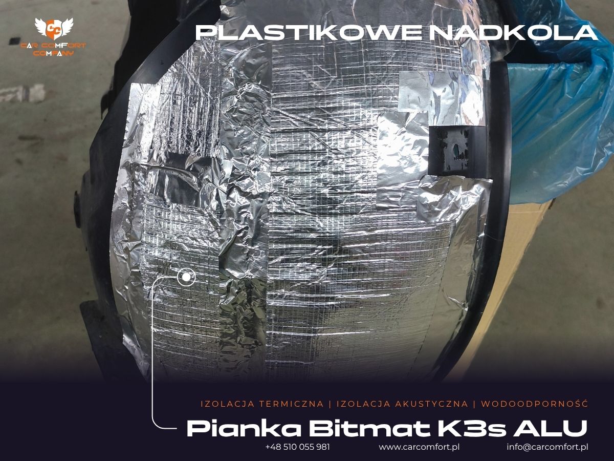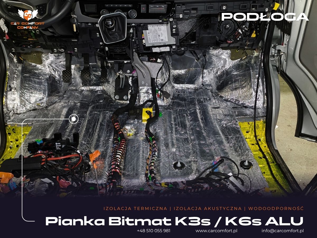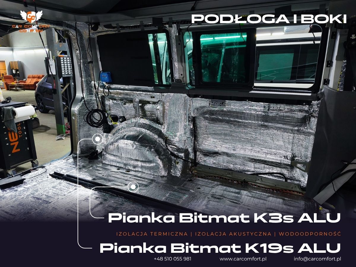 Zastosowano zaawansowane materiały termoizolacyjne, w tym K3s ALU, K19s ALU, maty Car Comfort Profi Light oraz pianki Bitmat M5s.
