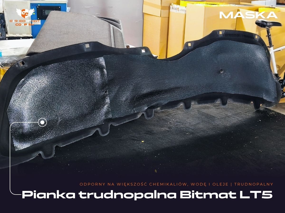 Maska została wyciszona przy użyciu Bitmat LT5, a całość uzupełniono taśmami aluminiowymi poprawiającymi szczelność izolacji.