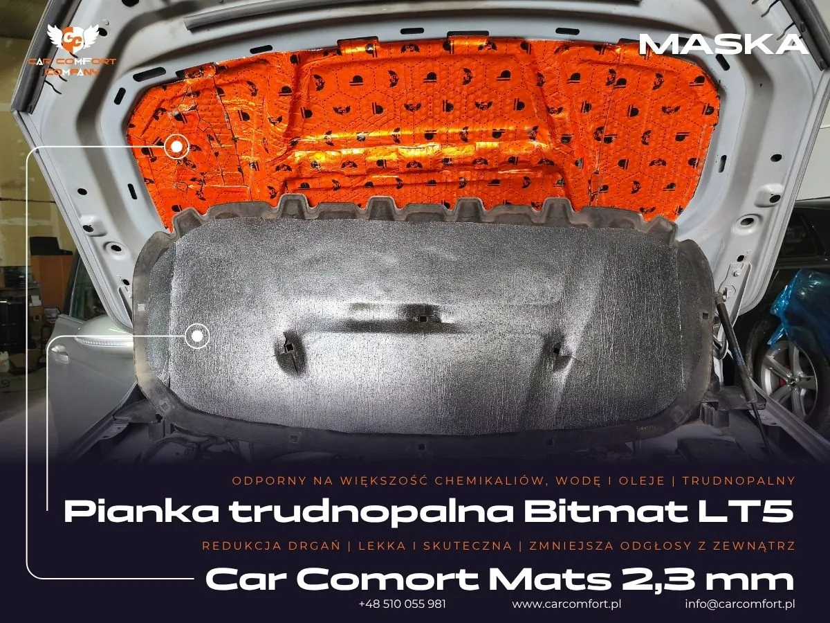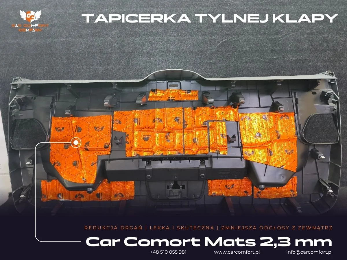 Wyciszenie Volkswagen Golfa Sportsvan odbyło się we dwóch etapach. Pierwszy etap obejmował bagażnik i nadkola, co przyczyniło się do redukcji hałasu o 1,8 dB. Drugi etap miał dodatkowe wyciszenie nadkoli, maski i podszybia. Niestety nie zmierzyliśmy kolejnego wyciszenia, ale możemy zapewnić, że wynik oscyluje w granicach 2,5 dB łącznie. Takie wyciszenie jest znacznie zauważalne podczas jazdy.