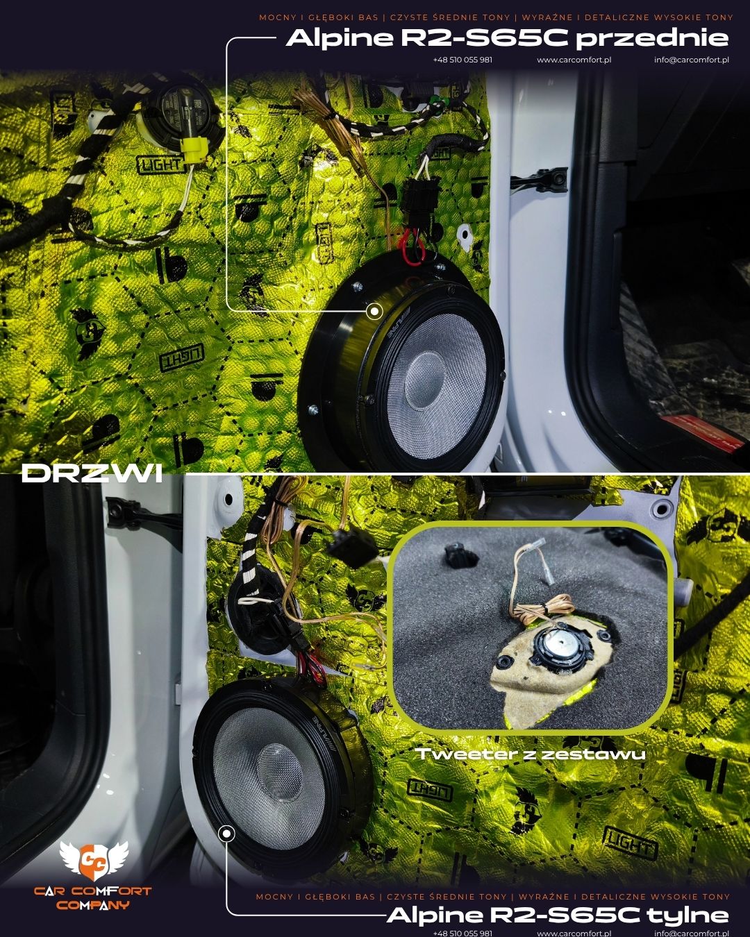 Taki zestaw zapewnia wyraźnie lepszą jakość dźwięku – większą dynamikę, lepszą scenę oraz precyzyjne dostrojenie systemu do wnętrza pojazdu.