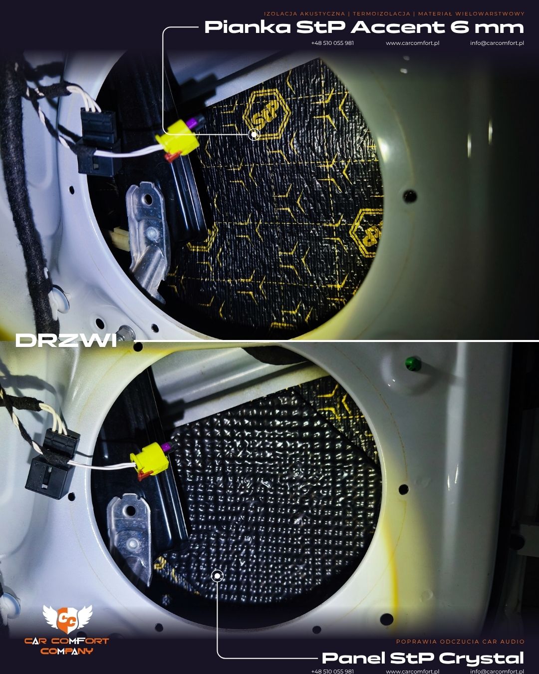 Dodatkowo zastosowano StP Crystal w miejscach montażu głośników, poprawiając ich stabilność oraz warunki pracy.