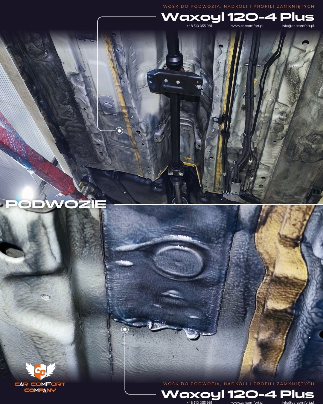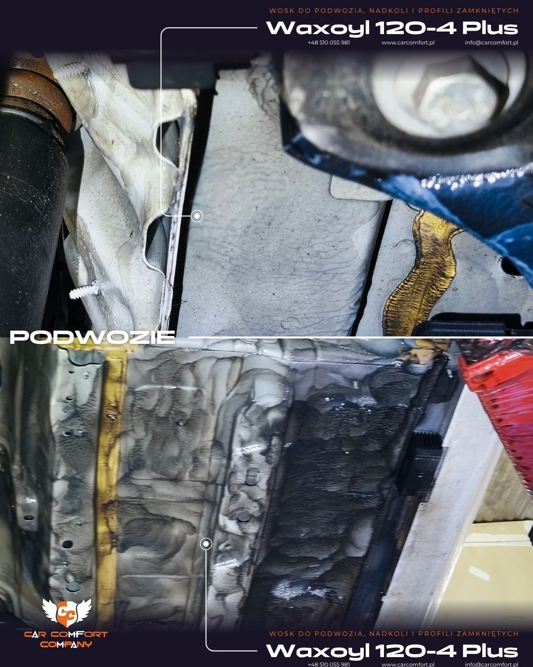 Zastosowany środek penetruje szczeliny i newralgiczne miejsca konstrukcji, tworząc warstwę ochronną, która zapobiega powstawaniu korozji i wydłuża żywotność podwozia.